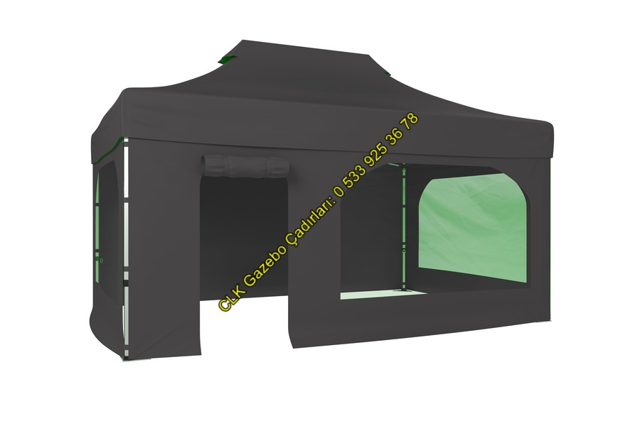İmalatçı firma CLK TİCARET güvencesi ile %100 su geçirmez, solmaz, çatlamaz, yıpranmaz Sunfabric kumaş ile üretilmiş, branda ve 52 mm sekizgen alüminyum iskelet ve mafsal parçaları 2 yıl garantili katlanabilir gazebo çadırları.